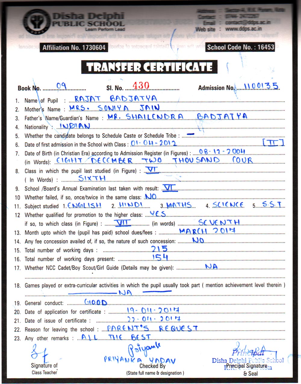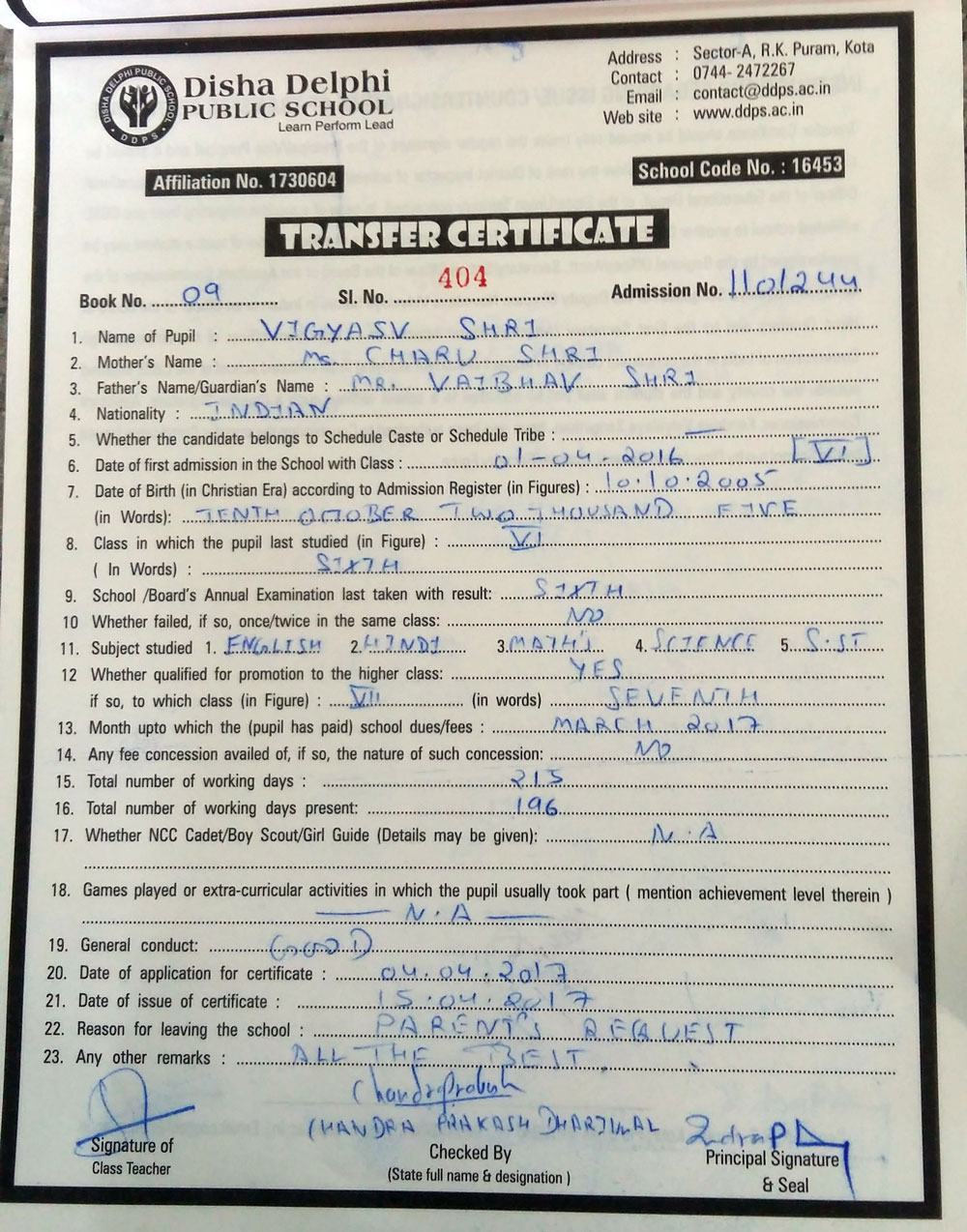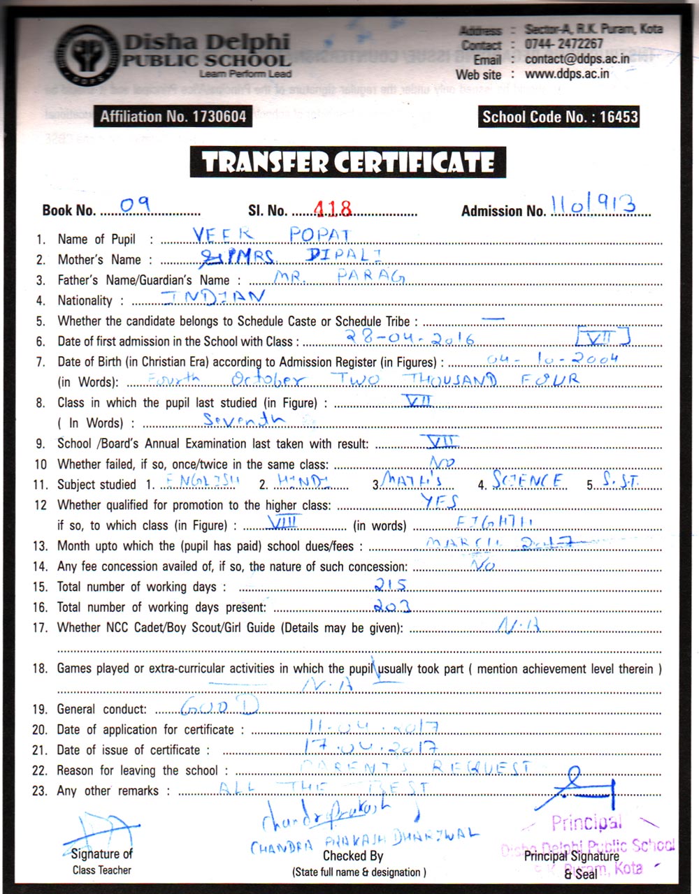 CBSE Affiliaton No 1730604
