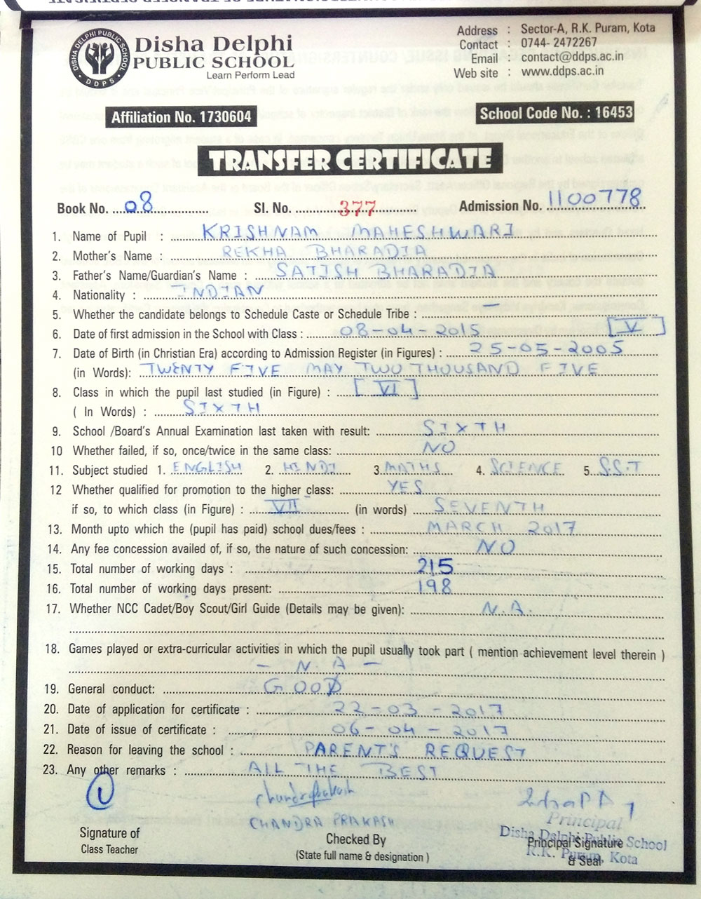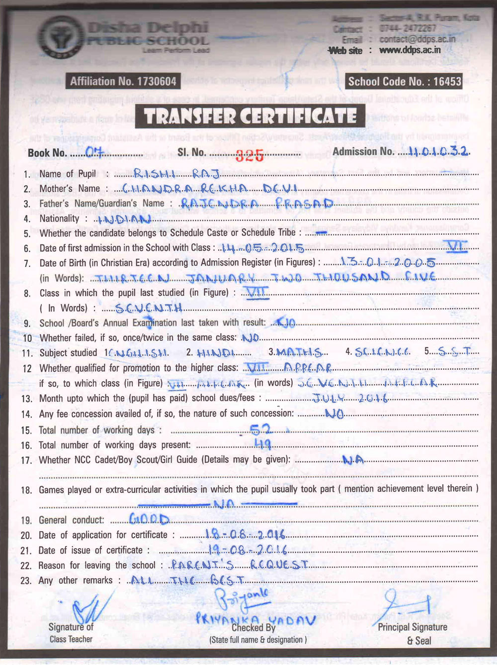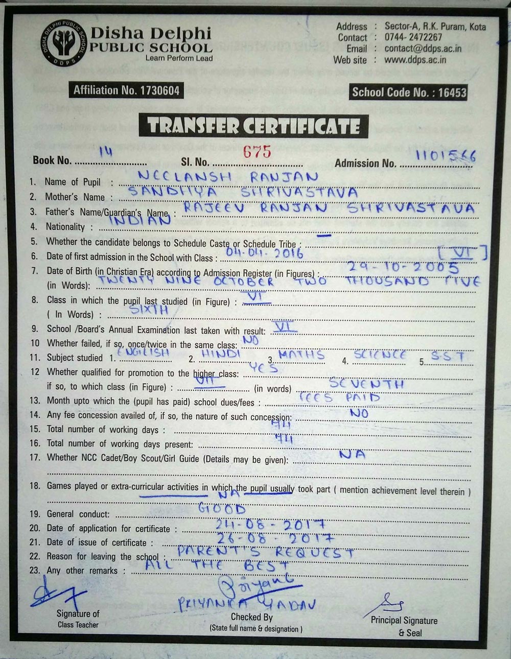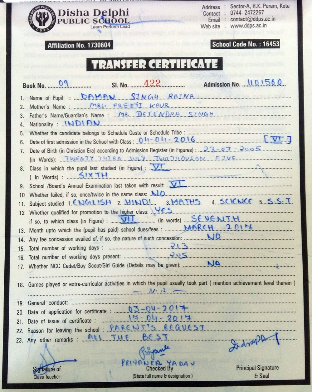 CBSE Affiliaton No 1730604
