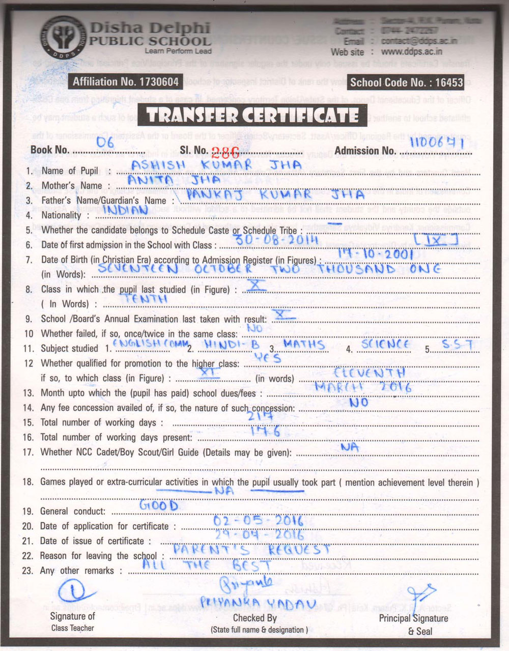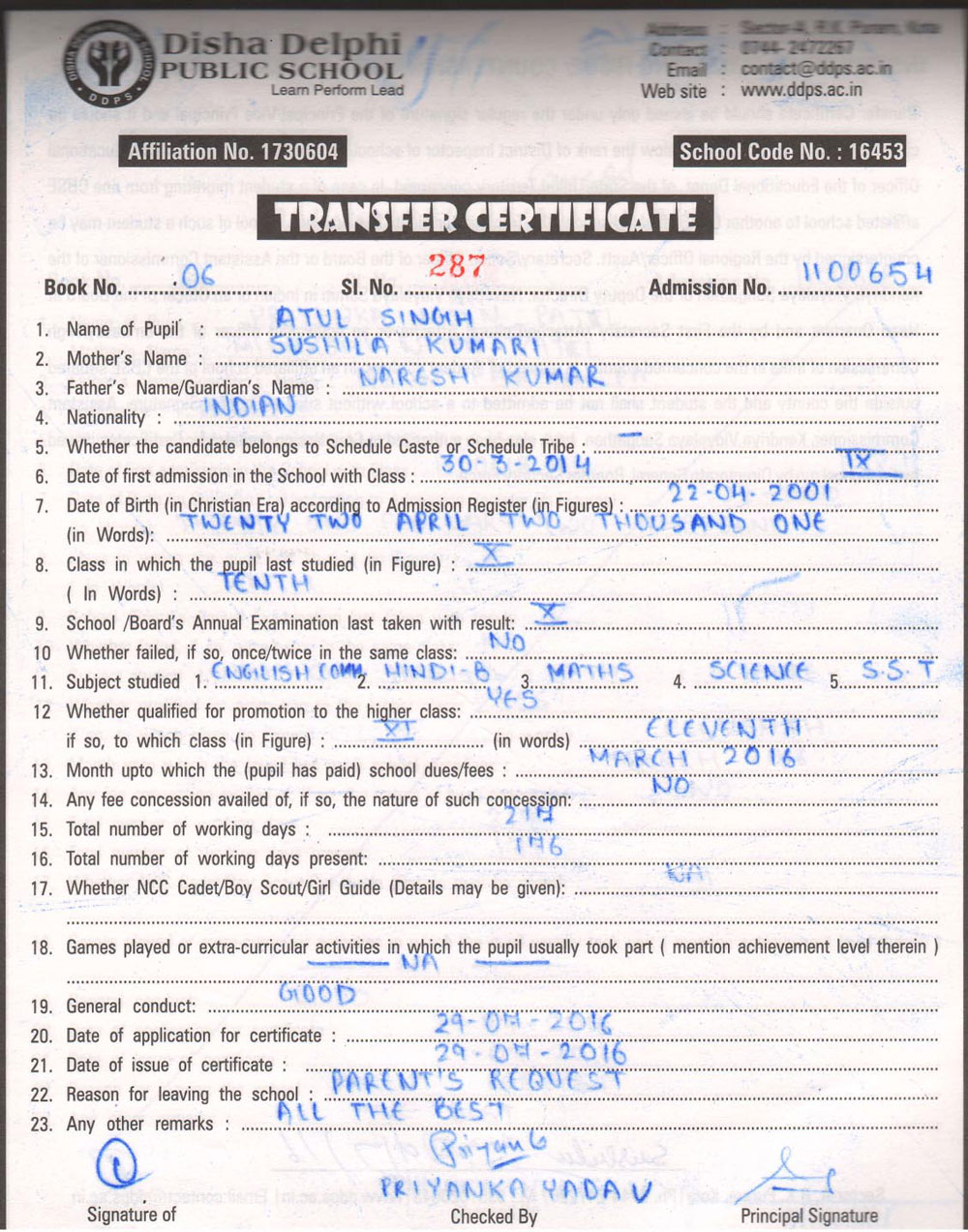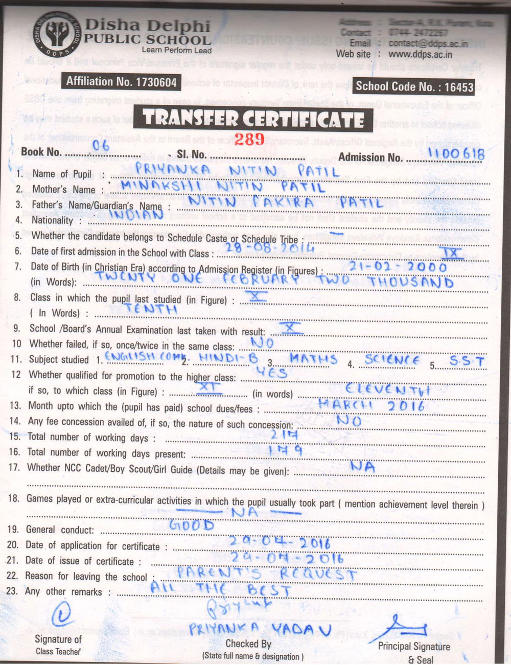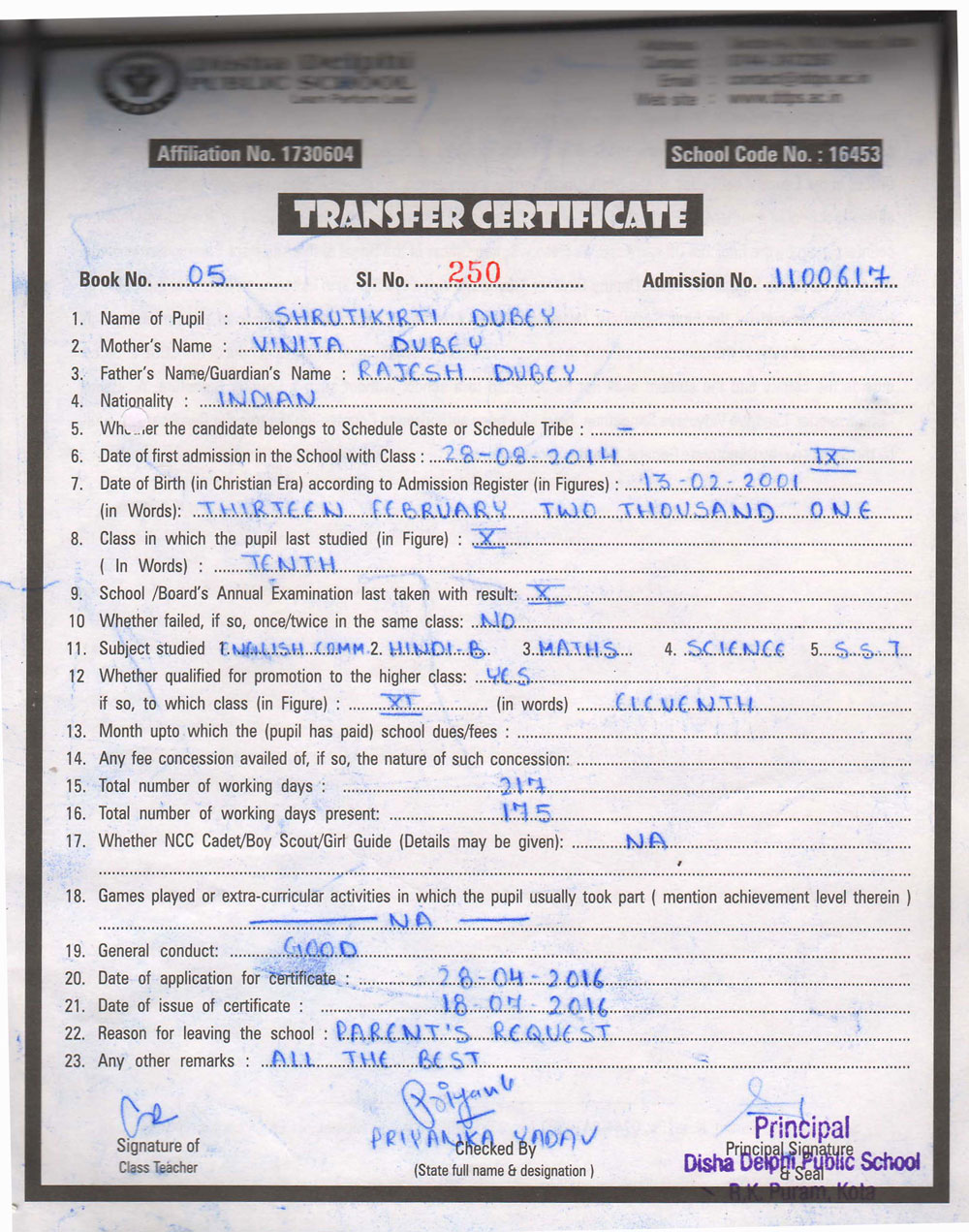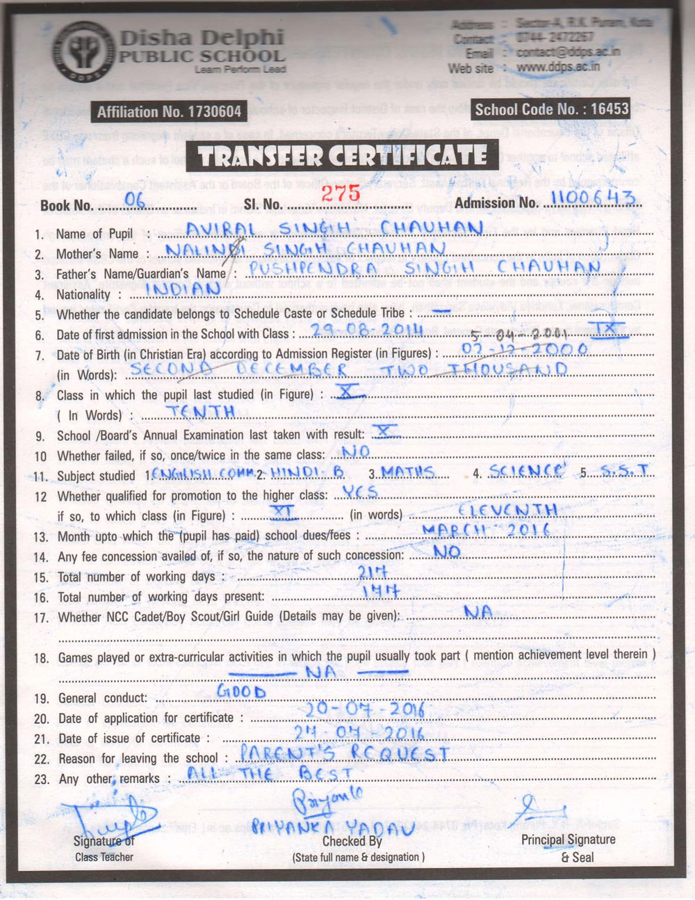 CBSE Affiliaton No 1730604