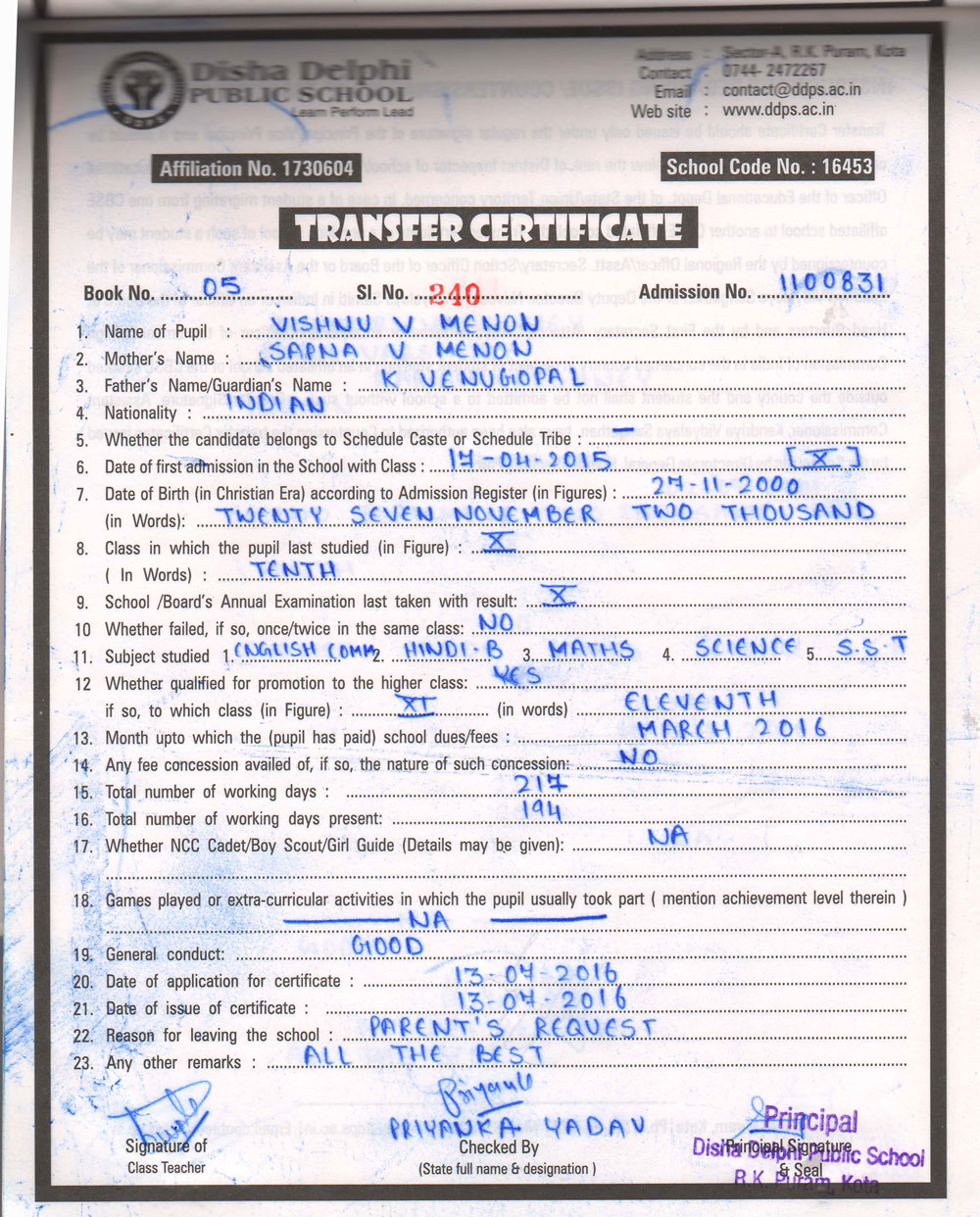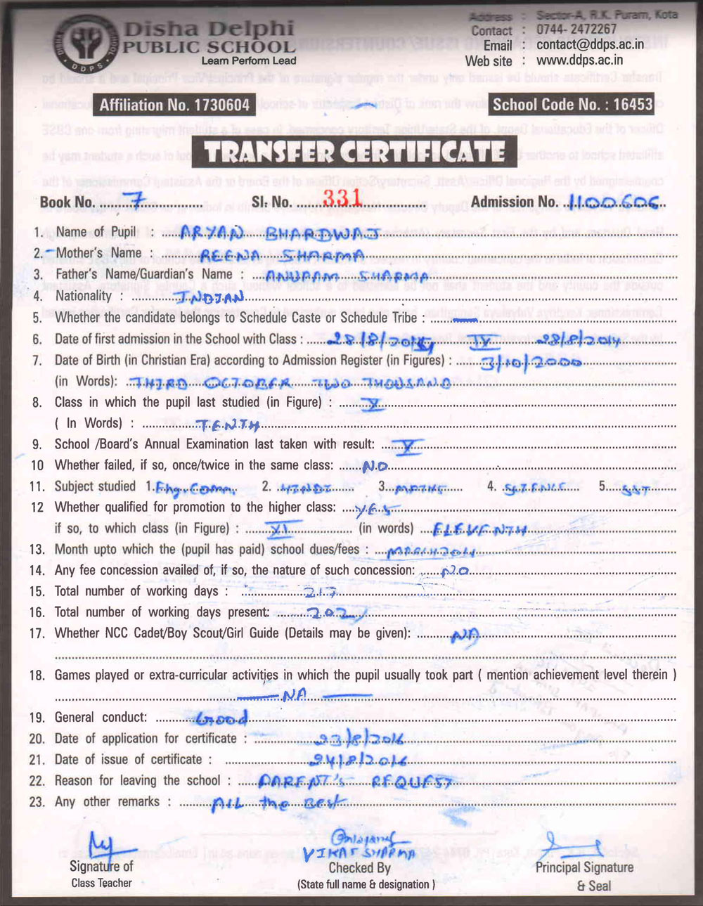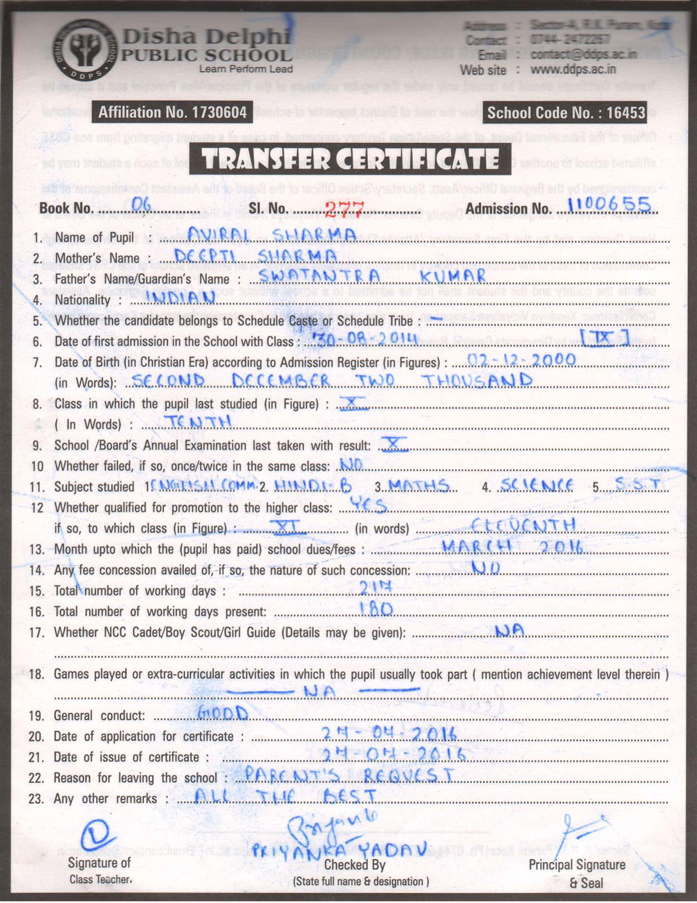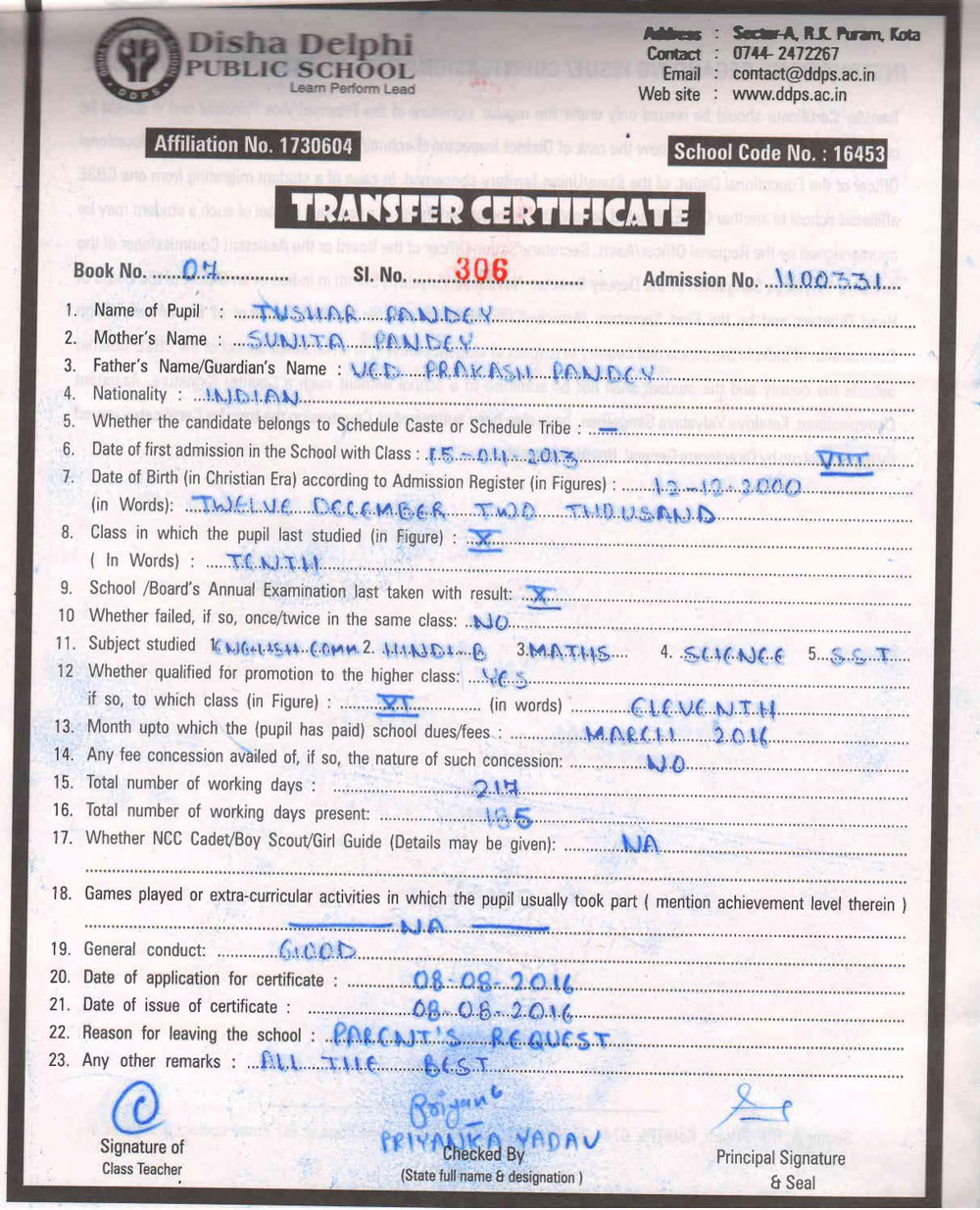 CBSE Affiliaton No 1730604