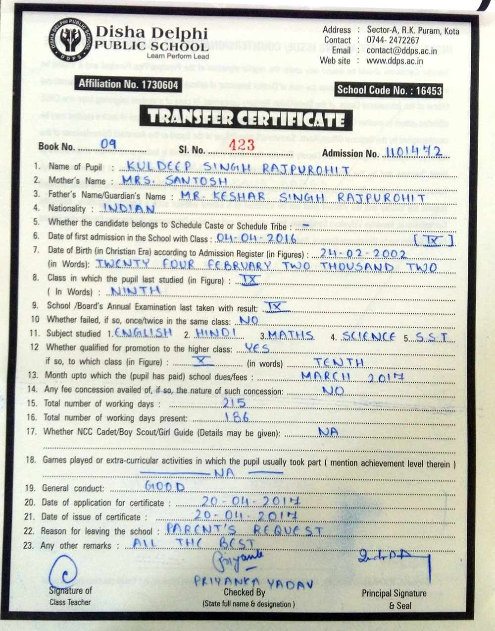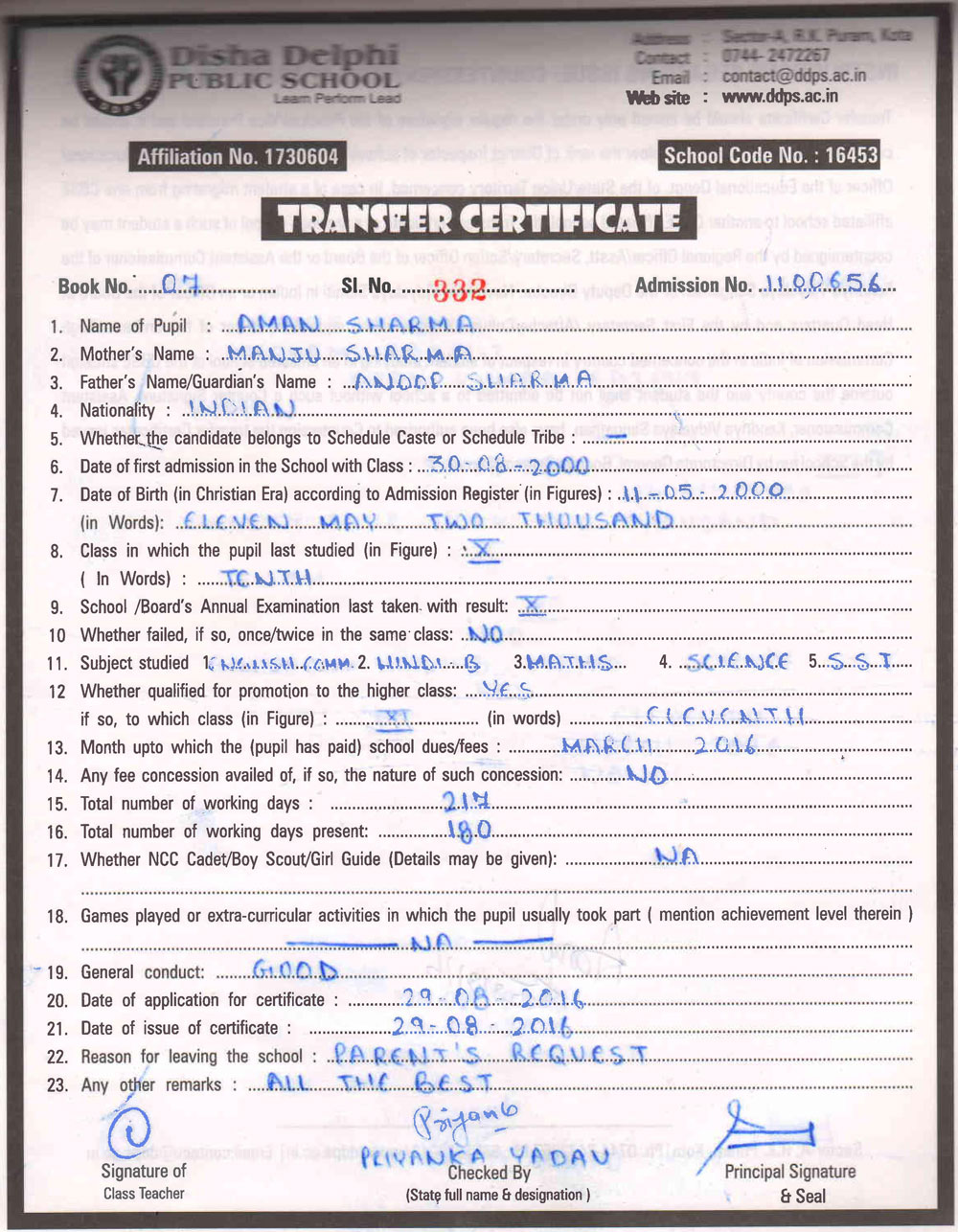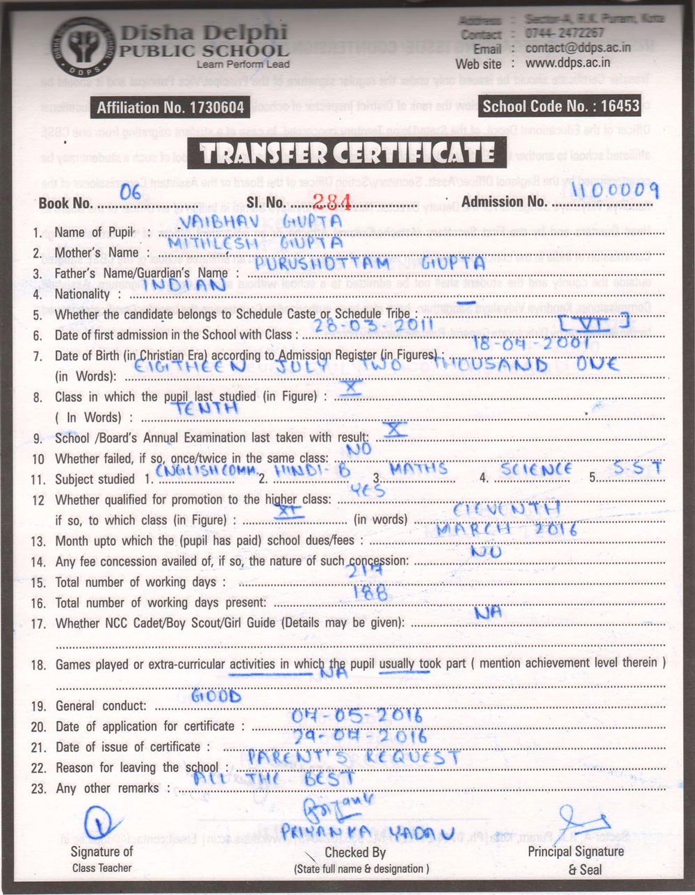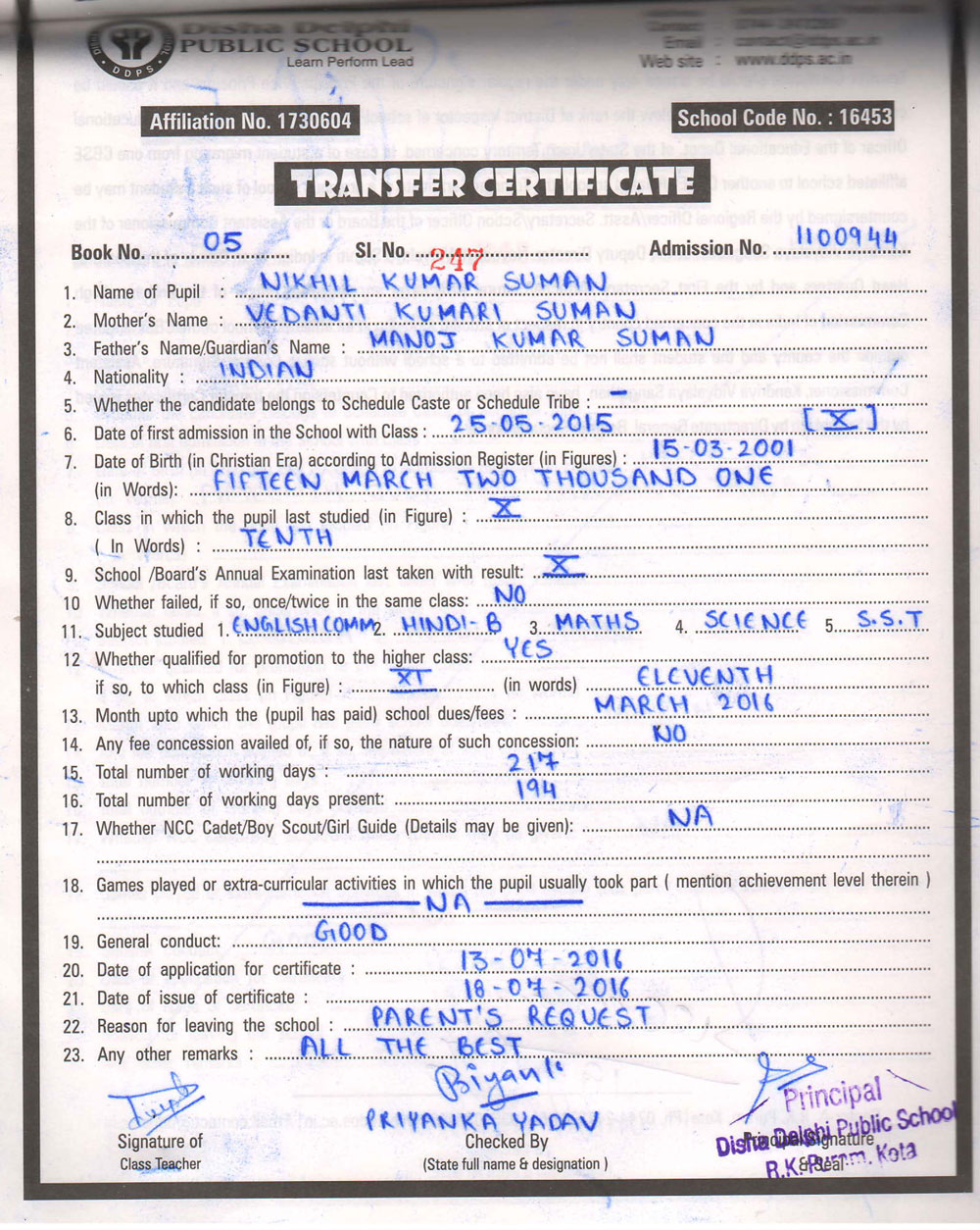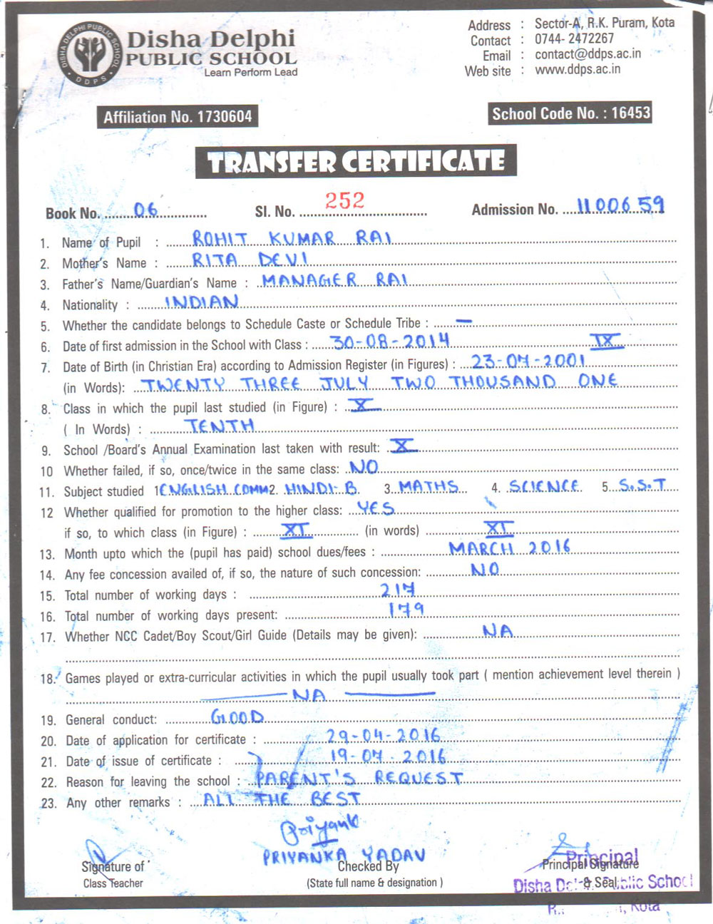 CBSE Affiliaton No 1730604