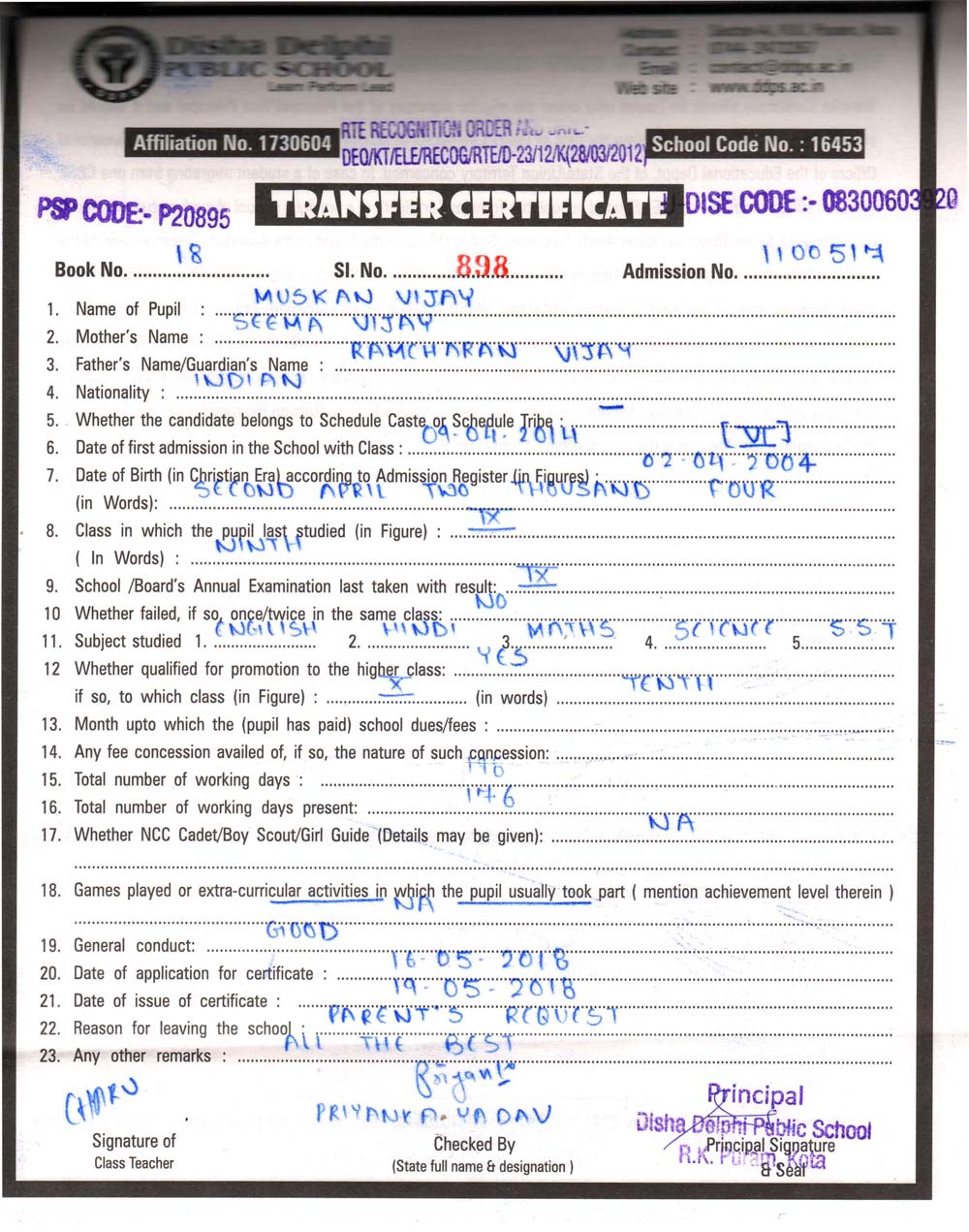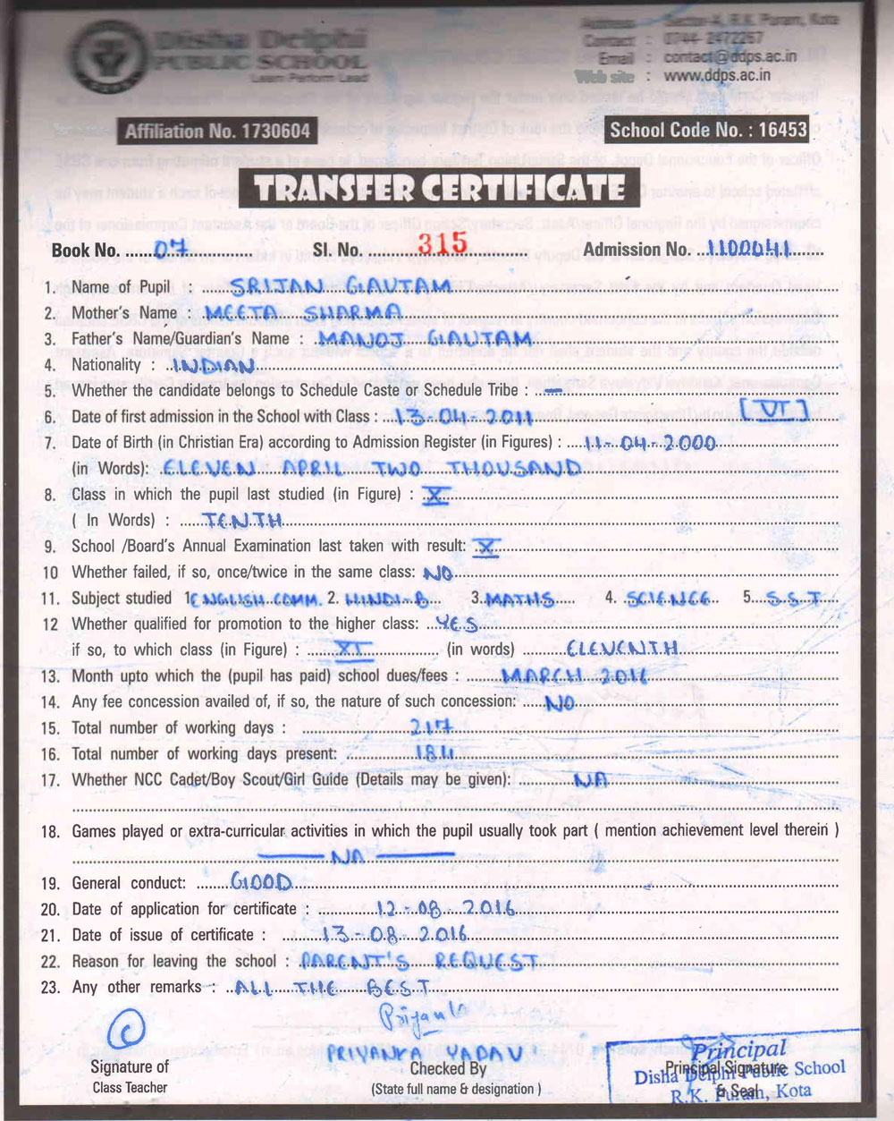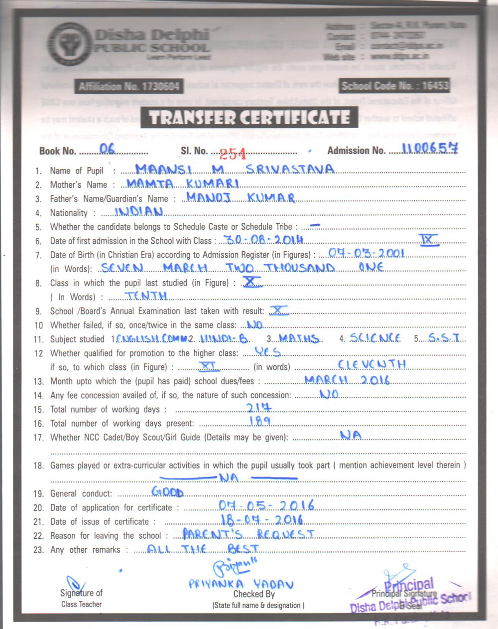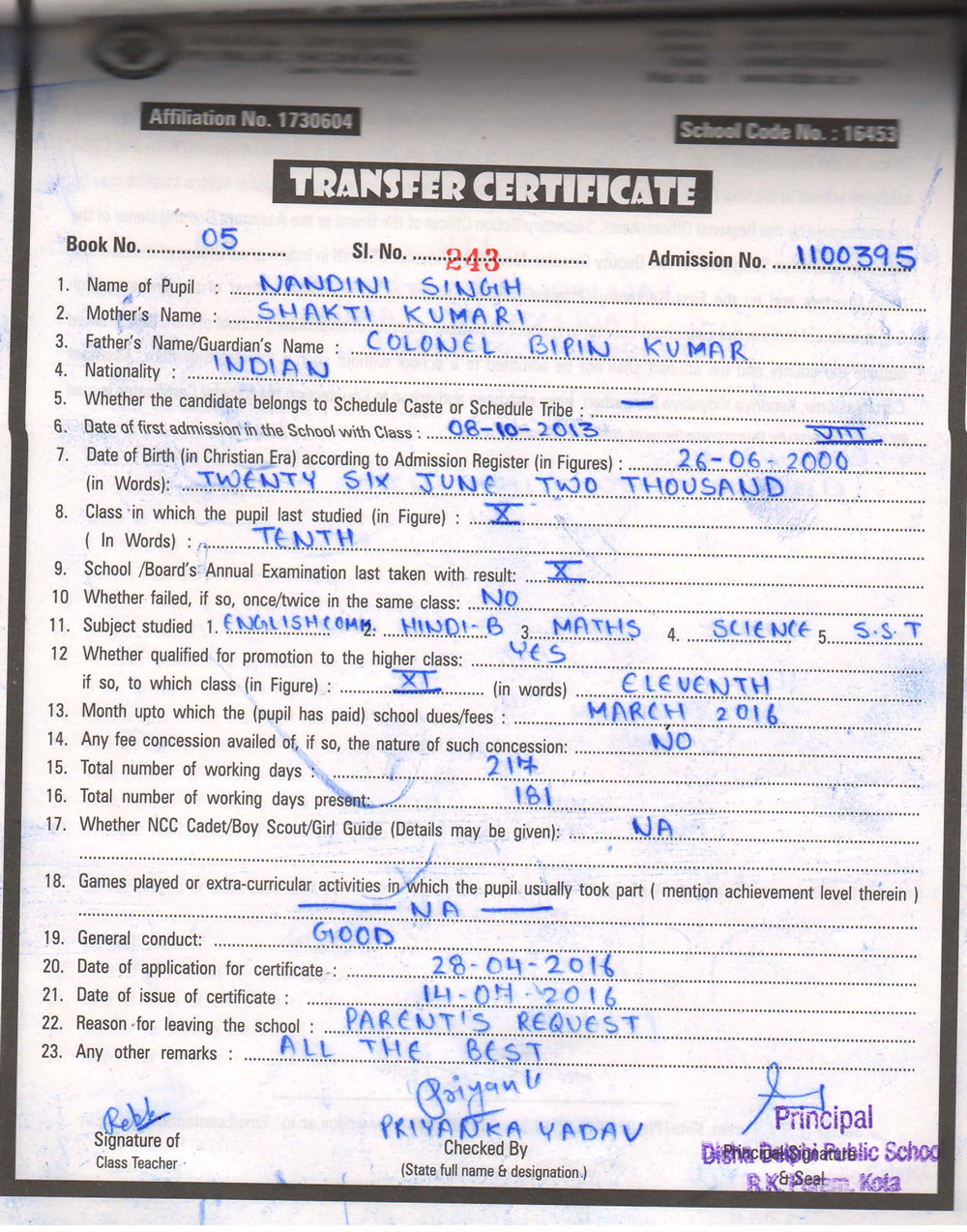CBSE Affiliaton No 1730604