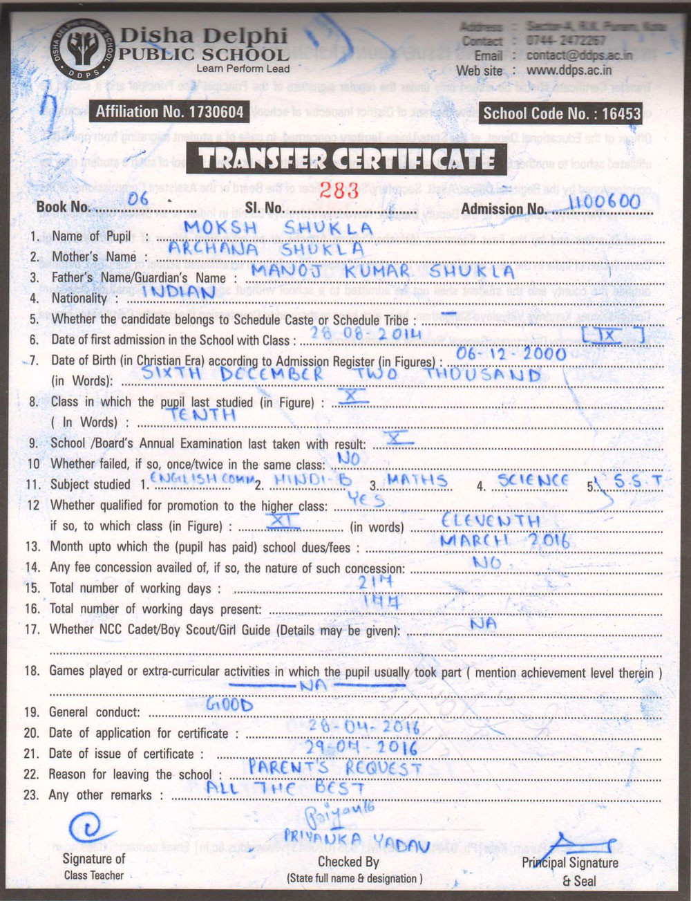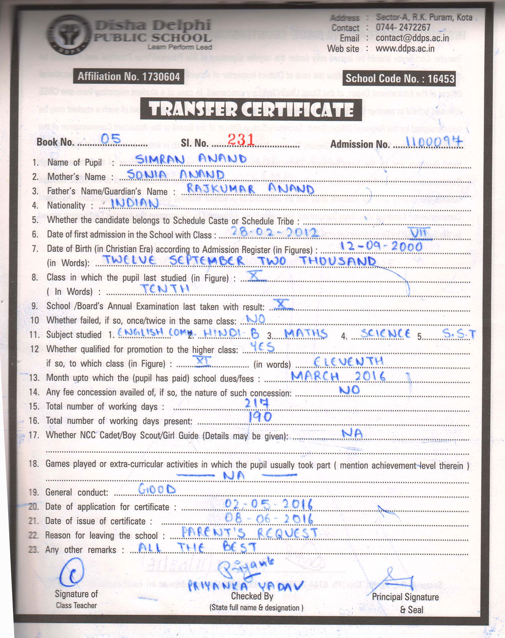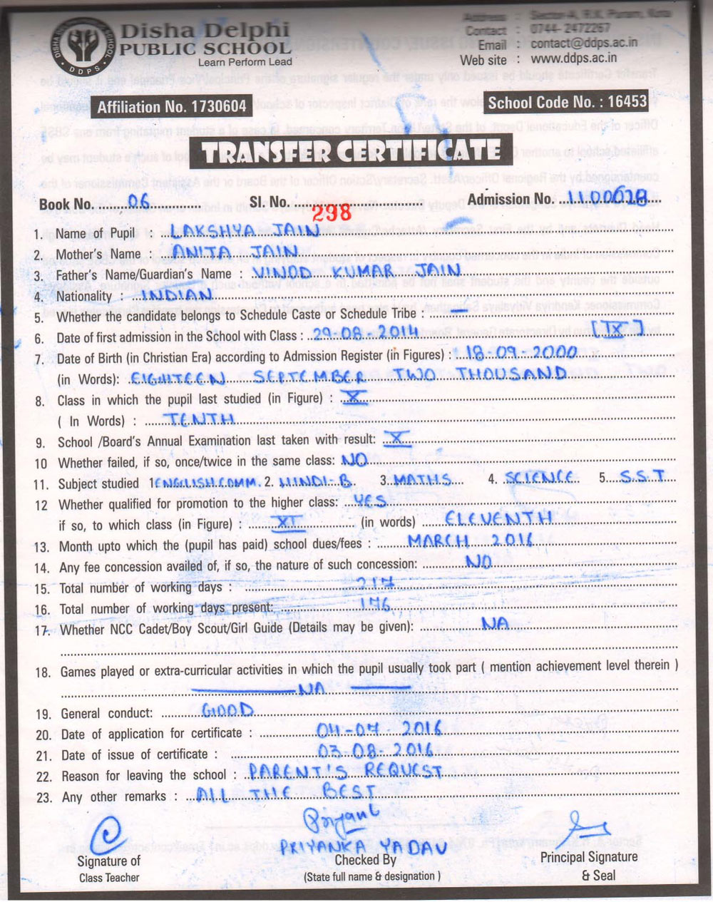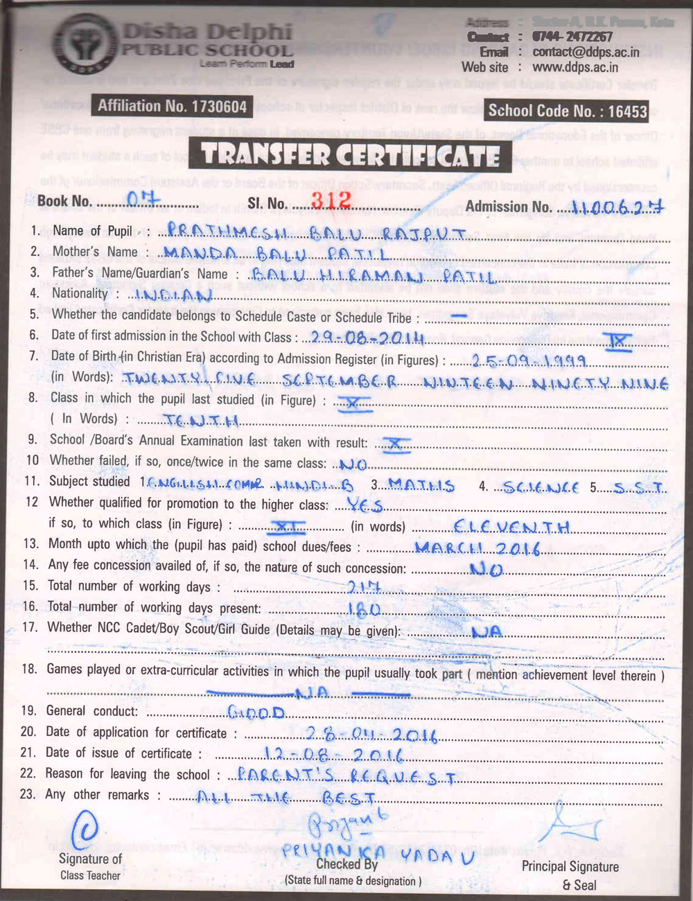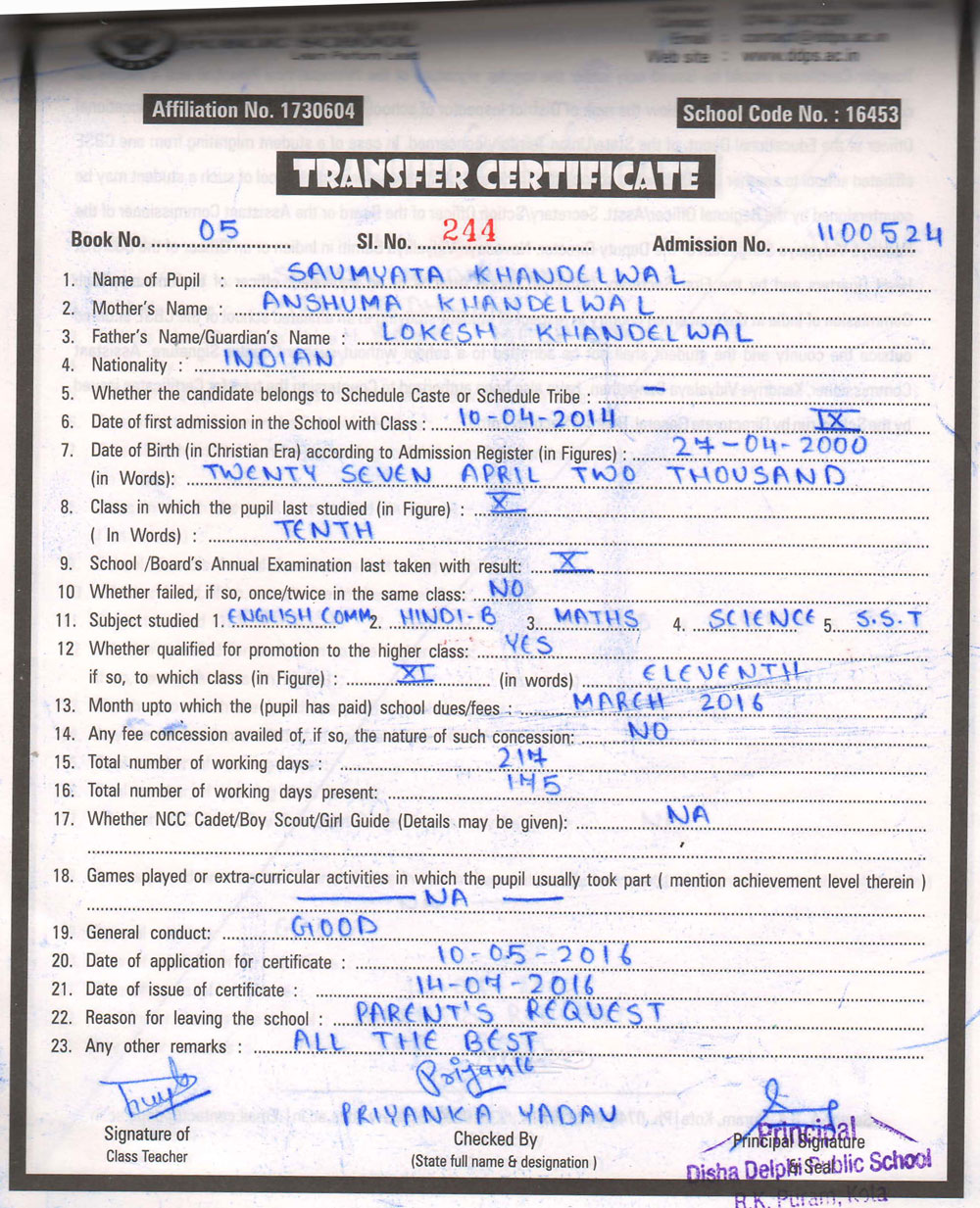 CBSE Affiliaton No 1730604
