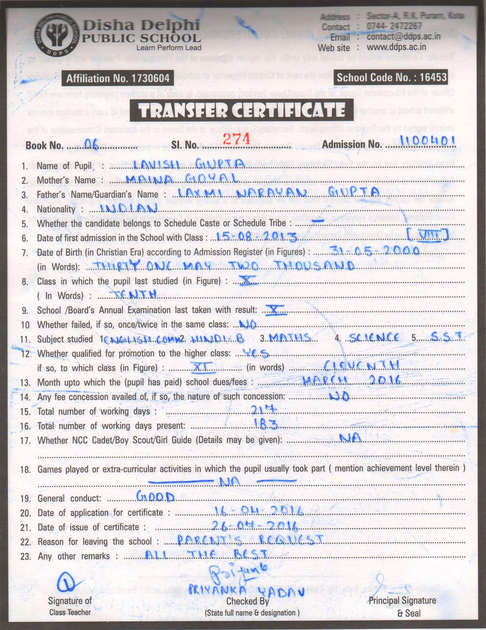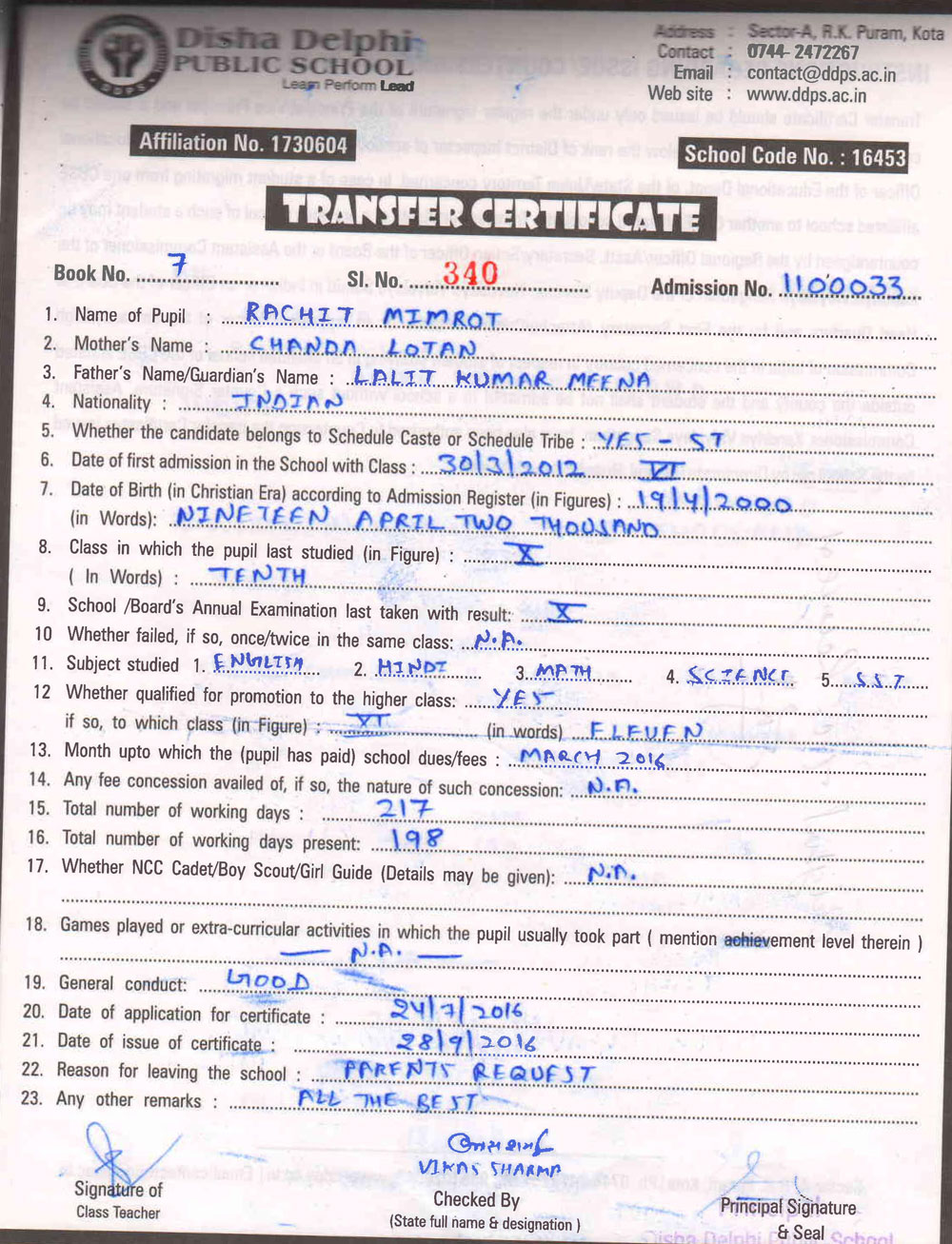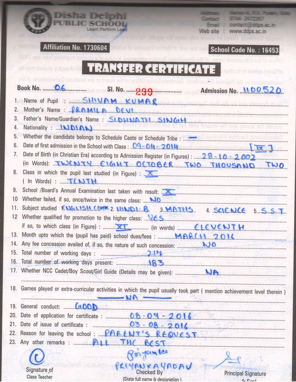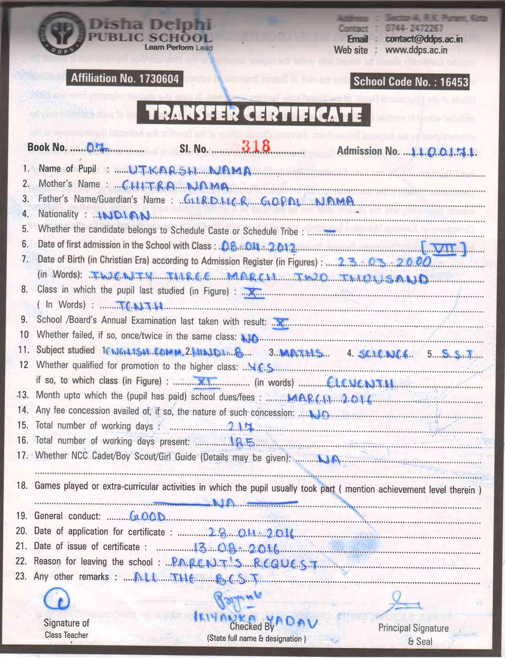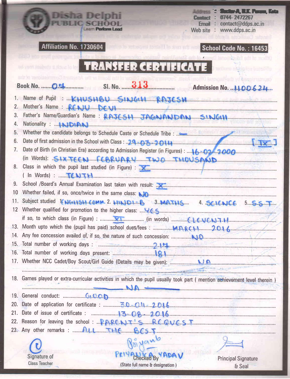 CBSE Affiliaton No 1730604