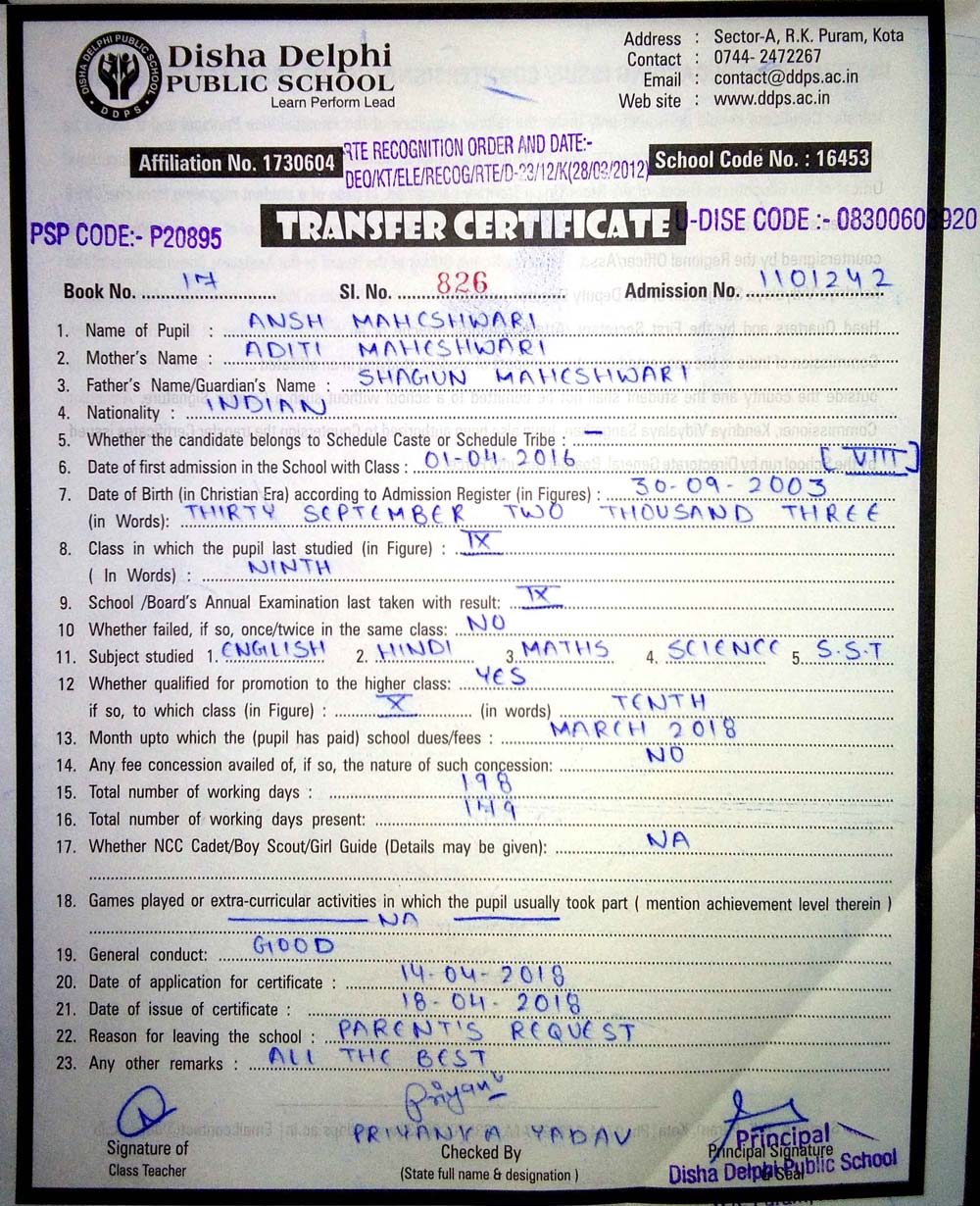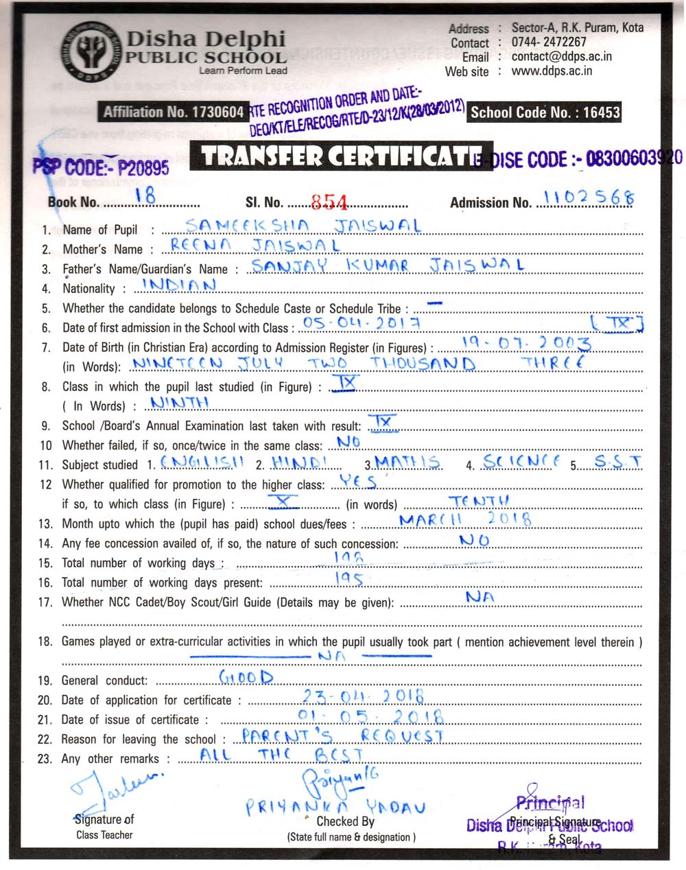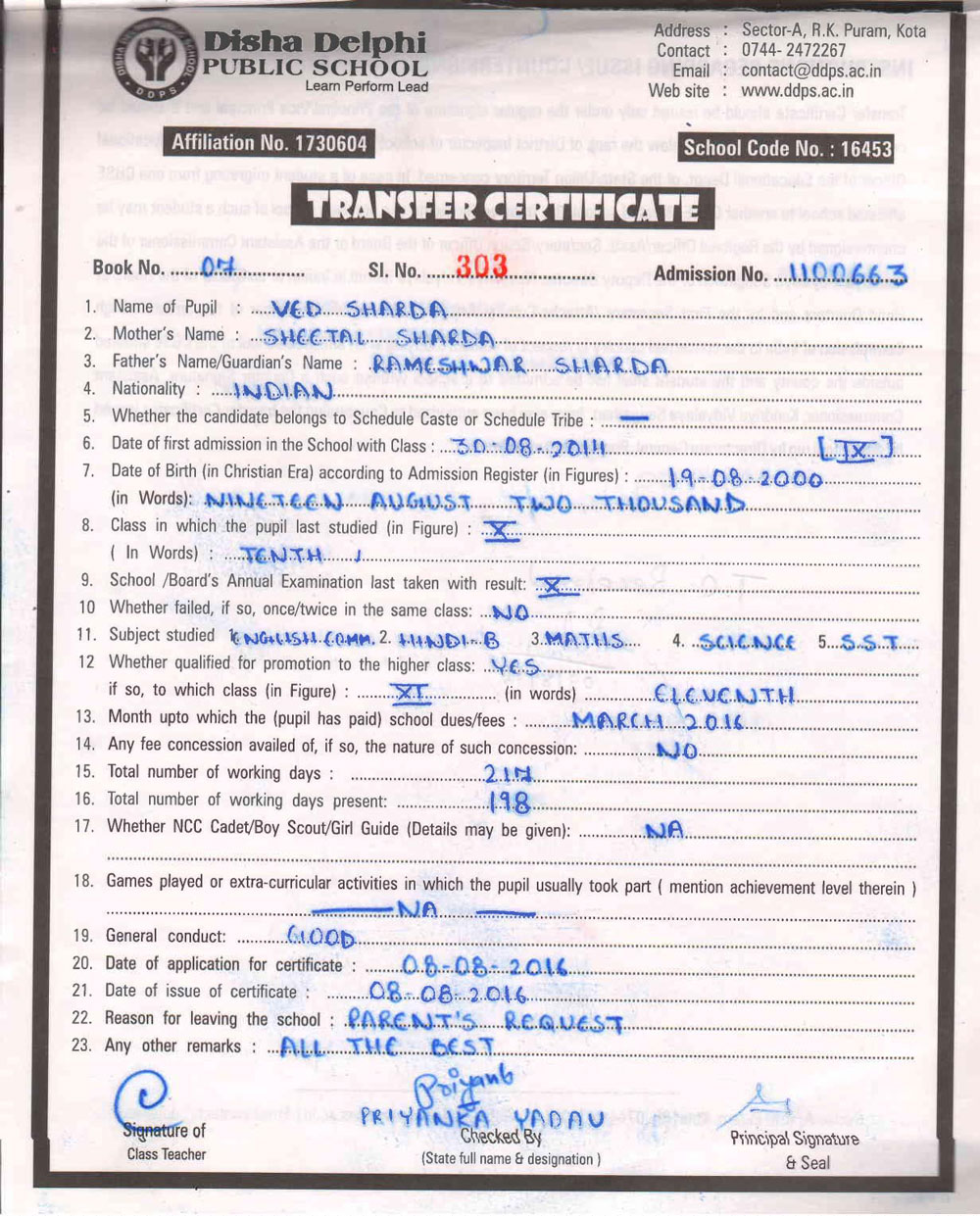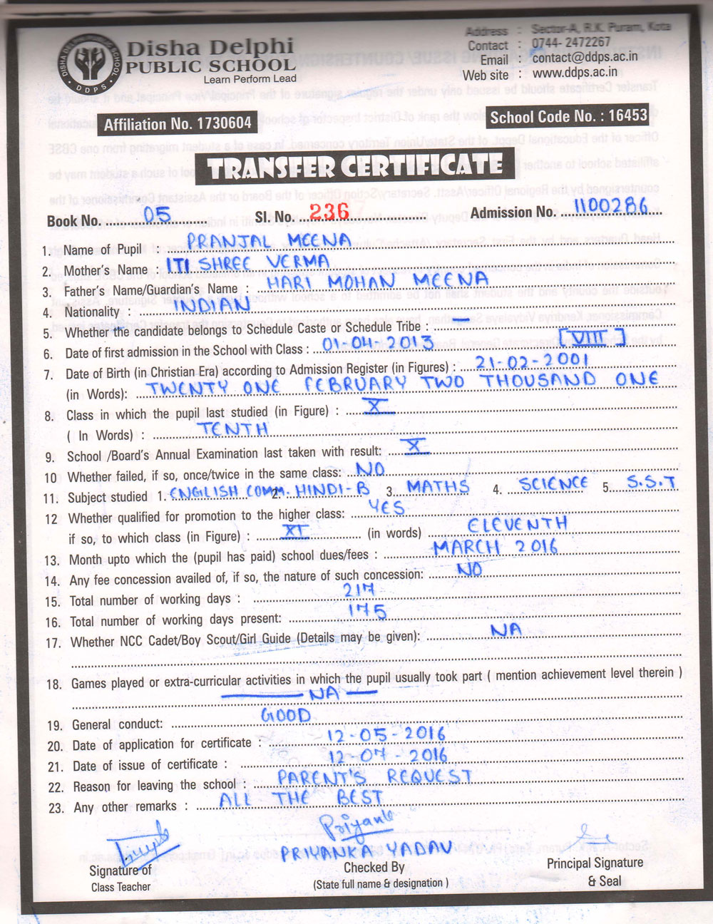 CBSE Affiliaton No 1730604