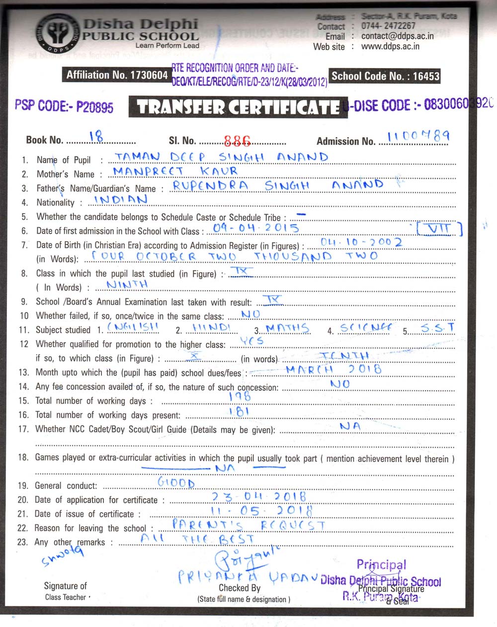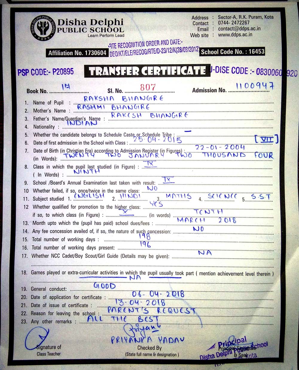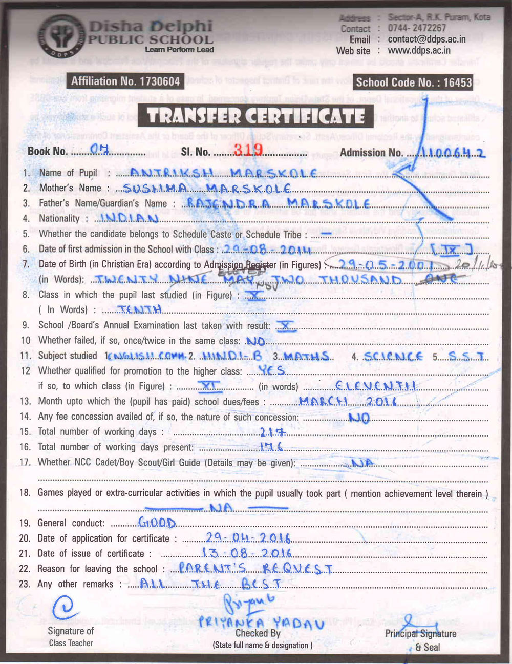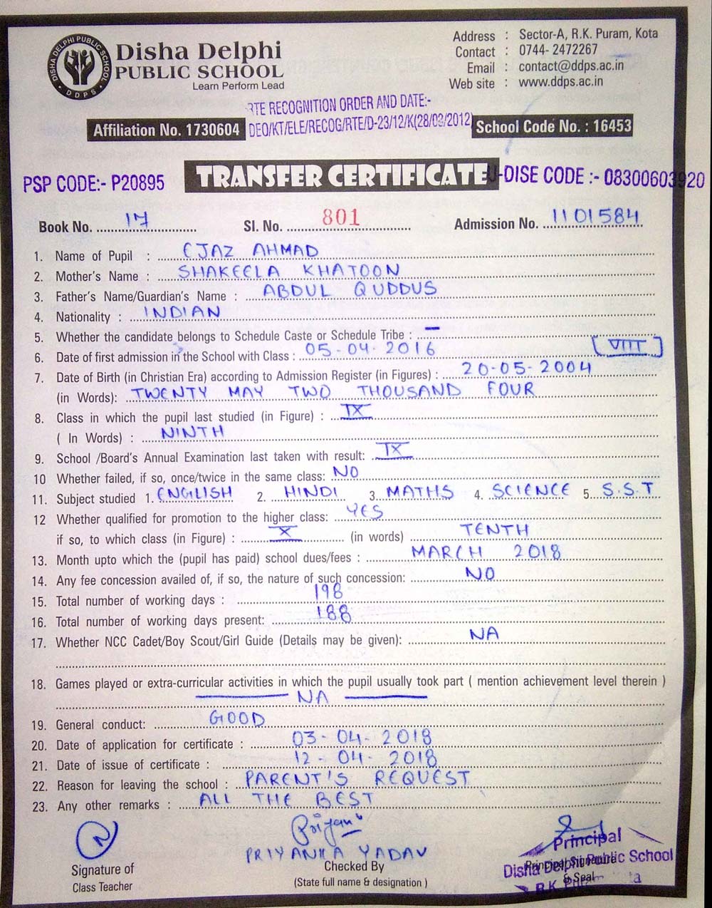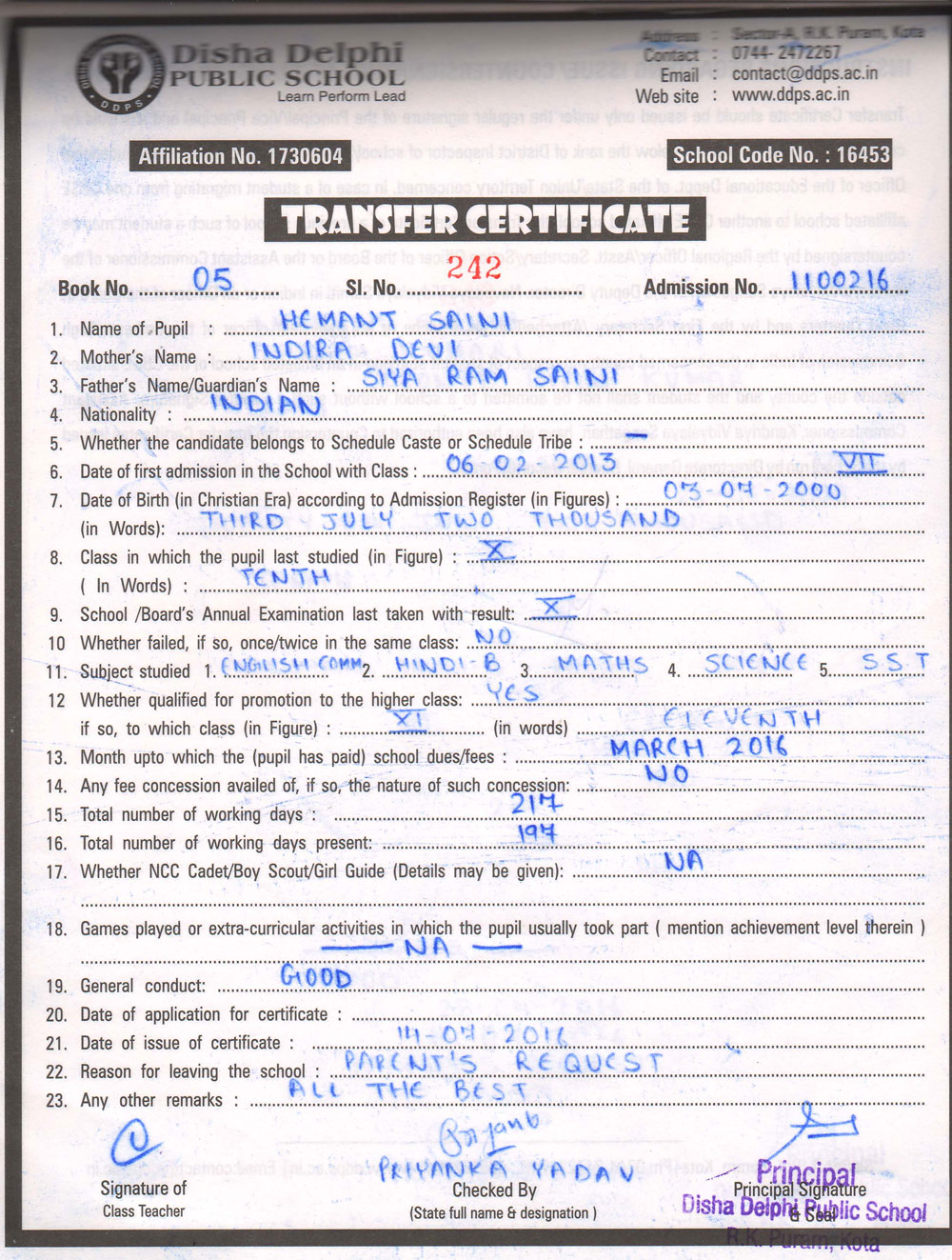 CBSE Affiliaton No 1730604