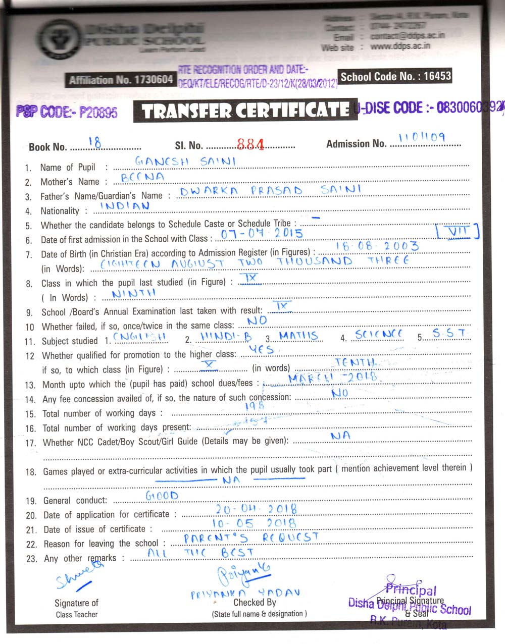 School Code 10950