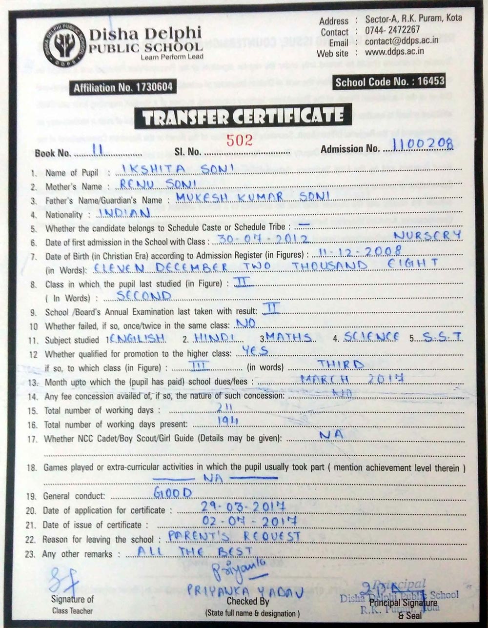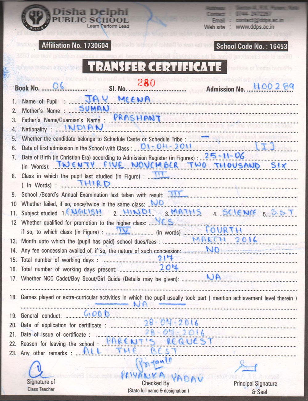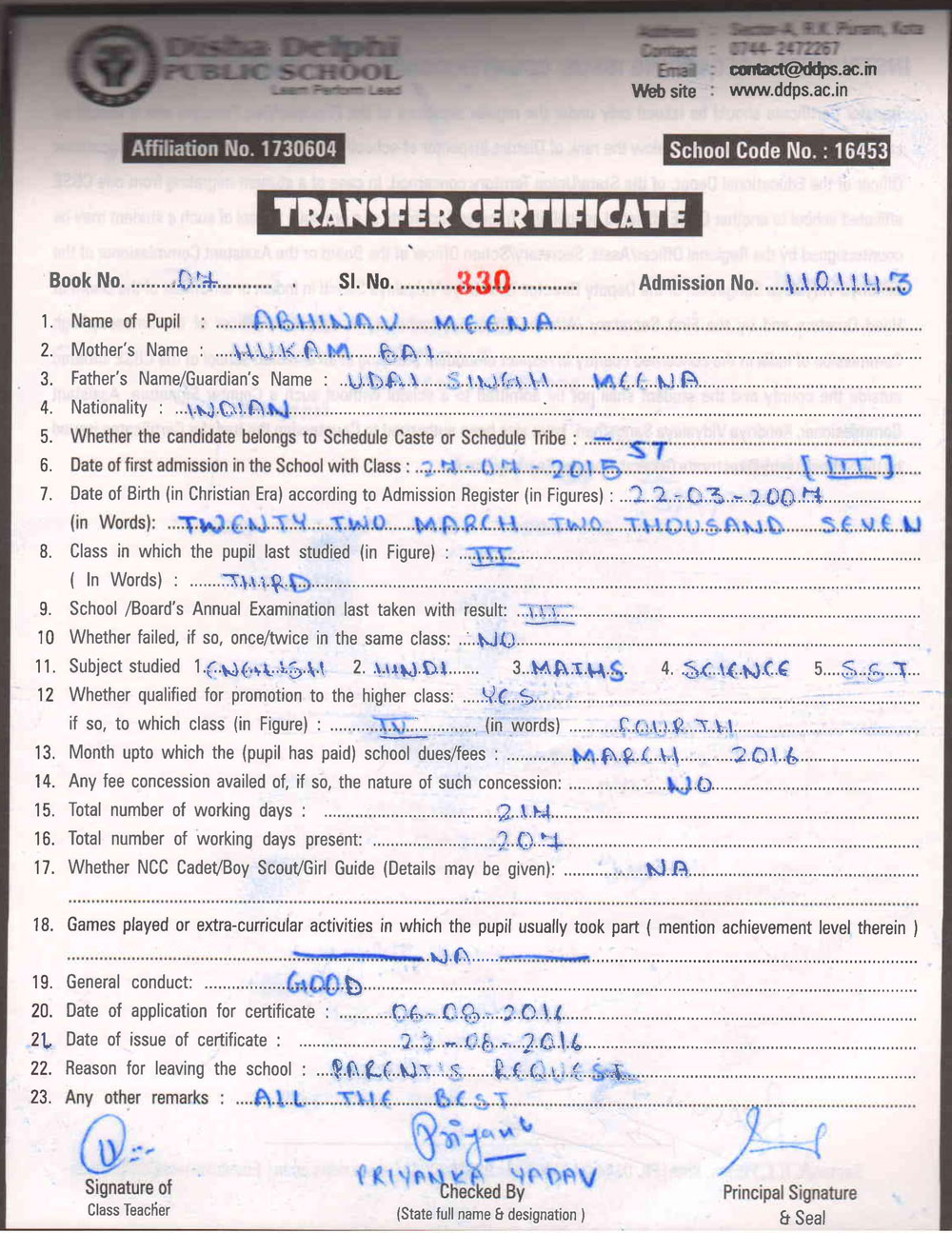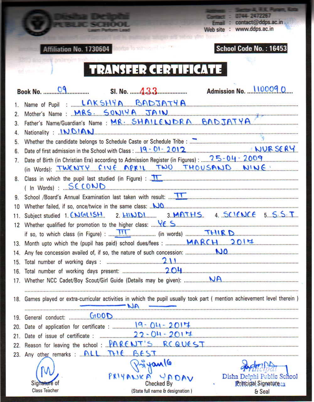CBSE Affiliaton No 1730604